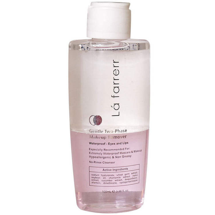 پاک کردن آرایش چشم و لب، از مهمترین مراحل پاک کردن آرایش است. چرا که باقی مانده آرایش روزانه میتواند پوست حساس و نازک این نقاط را به راحتی دچار عفونت کند. از آنجایی که بیشتر محصولات آرایشی چشم یا لب مانند انواع رژلبها، ریملها، مدادها، سایهها یا حتی سرمههای سنتی حاوی ترکیبات مقاوم و ضد آب هستند؛ بنابراین برای پاک کردن آرایش چشم و لب، باید از محصولات مخصوصی استفاده کنیم که توان حل کردن این ترکیبات را داشته باشند. محلول دو فاز پاك كننده آرايش لافارر مناسب براي آرايش ضد آب چشم و لب، حاوي سديم هيالورونات، عصاره گياهان جوانه گندم، بابونه، پنيرك و خيار، روغن دانه سويا، دكسپانتنول و آلانتوئين است كه علاوه بر پاککنندگی مؤثر و سریع آرايشهاي ضد آب قوي، موجب نرمكنندگي، رطوبترساني و تغذیه پوست ميشود. همچنين اين محصول براي چشمهاي حساس مناسب بوده و با انواع پوست سازگار ميباشد.